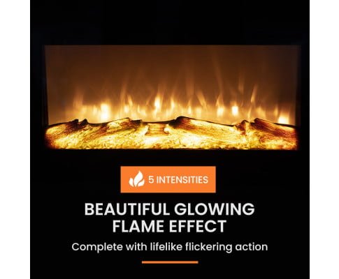 Add the ambiance of a real fire place with this modern black mantel electric flame effect heater!