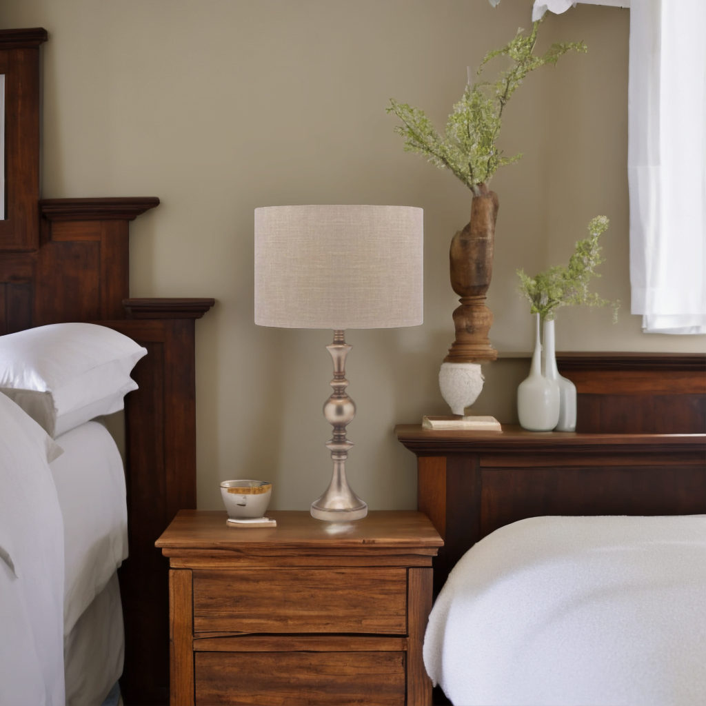 $304.32Original price was: $304.32.$269.00Current price is: $269.00.Traditional silver, pewter and taupe table lamp!