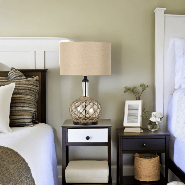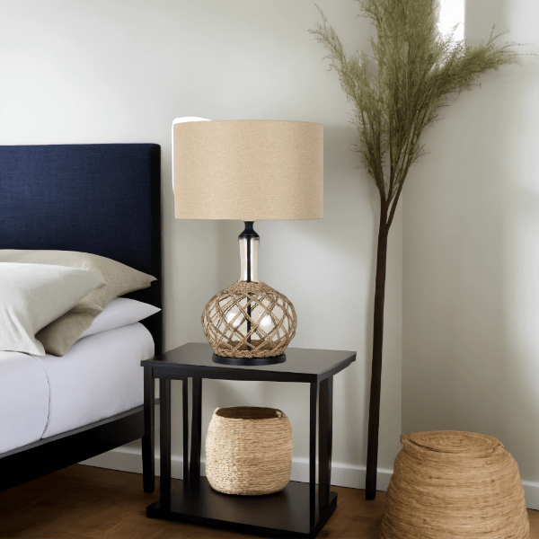 The Ivy Beige Table Lamp by Lights and Lamps Australia featuring a stylish coastal design.