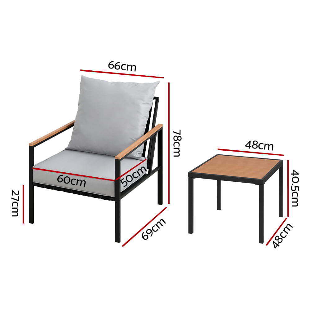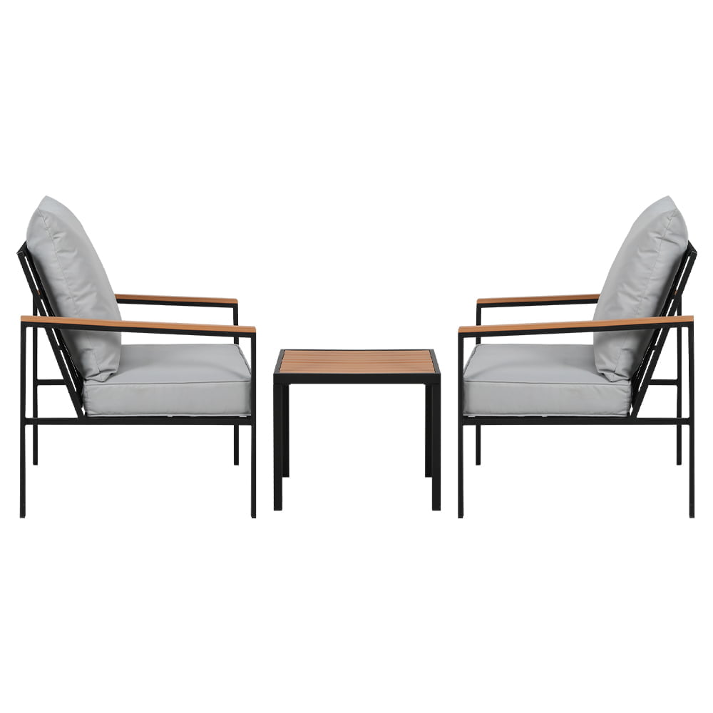 - Durable Construction: Made from powder-coated steel, this outdoor setting is both rust and water-resistant, ensuring longevity and resilience against the elements.