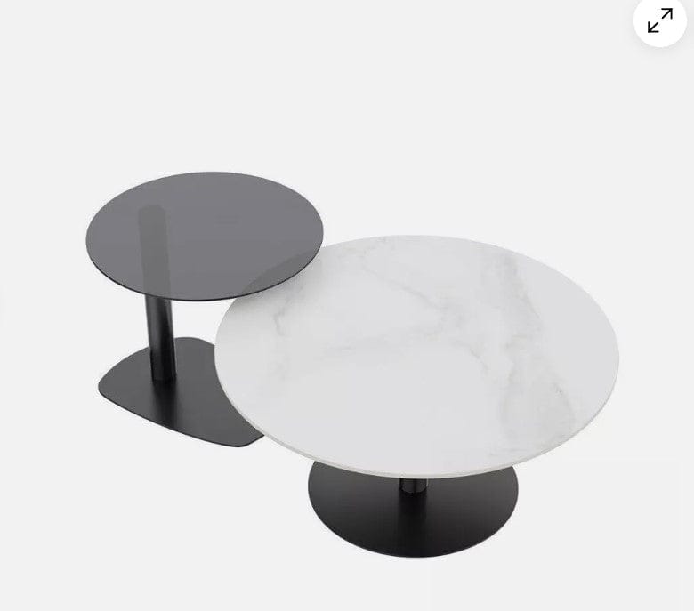 Stylish Coffee Table Nest with a White Stone Top & Gold Metal Frame