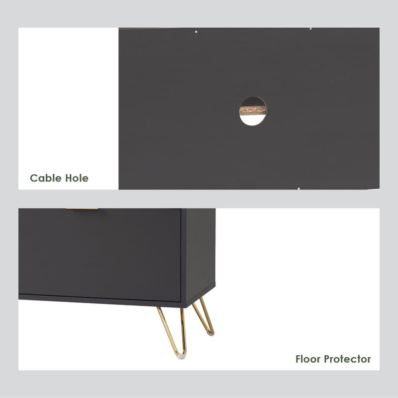 Modern and contemporary white and gold entertainment unit with elegant design.