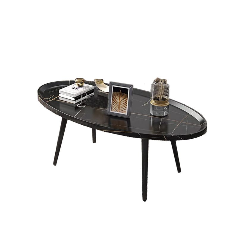 Oval Coffee Table with a Black Marble Finish and Minimalist & Modern Style
